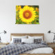 This stretched canvas wall art is shown with a photo print of a lovely garden of sunflowers.