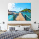 This stretched canvas wall art is shown with a photo print of a beautiful water dock scene in Thailand.