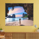 This stretched canvas wall art is shown with a photo print of a beautiful beach scene in Thailand.