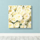 Wrapped canvas art is shown with a graphic print of pretty white roses.