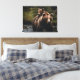 This stretched canvas wall art is shown with a photo print of a mama bear and cub in the river.
