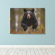 This stretched canvas wall art is shown with a photo print of a black bear jumping in mid air in Yellowstone National Park.