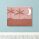 This wrapped canvas is designed with a nighttime scene of a mountain, palm trees, stars, and a crescent moon.