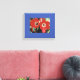 This wrapped canvas displays my photo of two bright red tulips, one with a raindrop!