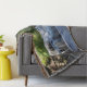 A quality printed throw has its advantages. This is a much finer weave throw than its loopier cousins, and though lighter, it is worth the investment for custom room accessorizing. The back is much prettier than the typical brown, and the fringe on the long sides very vivid, the selvage nicely done. Before photographing, I washed the throw in cold water, delicate, with a thicker woven throw the same size. On tumble dry low, this throw was dry in half the time as the other. This is a very practical quality if you use throws for furniture covers or to wrap up in frequently. The sleekness of the fabric makes it a great layer for accenting or protecting without the feeling of sitting on too much stuff. Perfect for napping or when you feel a light chill coming on. The color printing is beautiful and on this fabric, matched the design and color of my Photoshop image. This is an advantage for blending room fabrics and colors. The fringe on the short sides prints the colors from the design image and therefore varies from the side fringe. I streaked a white fractal line through the plaid pattern to give the illusion of weaving. This printed as crisp as an illusory thread, and put some white in the short side fringe, showing another advantage of print vs loomed- for artistic purposes, line lines, detail, and color integrity can be planned and preserved. My loomed throws have color limitations and more of a needlepoint texture. Print throws reproduce an exact image. The throw felt a little stiff straight out of the package, but this went away in the first delicate wash. Of course I searched the wash water for ink or bleeding and there was none.