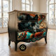 Meet your moody showpiece: a black wolf decoupage for furniture set against a canyon-red and turquoise lodge blanket. The low-light sheen on the onyx coat adds depth without stealing the scene, making it perfect for wide drawer banks, cabinet doors, and armoire panels. Colors play beautifully with deep teal, ember rust, and saddle brown finishes. Printed for crisp burnishing and smooth sealing, it delivers a polished, modern-lodge focal point on dressers, hutches, and sideboards.