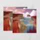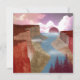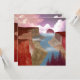 This gorgeous landscape design depicts a canyon leading into the ocean and sunset with various shades of red, crimson, beige, orange, and tan.
