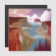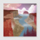 This gorgeous landscape design depicts a canyon leading into the ocean and sunset with various shades of red, crimson, beige, orange, and tan.