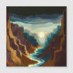 A beautiful landscape of a canyon with a river in bold shades of brown, tan, blue, cyan, gold, and beige.