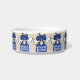 This is a heavy, durable bowl decorated with Tibbies of many colors, the perfect size for hungry/thirsty Tibs. The design is interesting and printing clear.