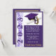 Graduation Invitation, Cap & Diploma theme, with "Year" artwork, in Purple and Gold, with Purple background. Back of invitation includes graduate name, Can be personalised with your own images, artwork, etc.