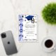 Foil Graduation Invitation, Cap & Diploma theme with foil stars, with "Year" artwork, in Blue and White inks & Gold Foil. Back of invitation includes graduate name, Can be personalised with your own images, artwork, etc. Genuine Italian foil.