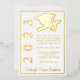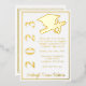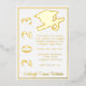 Foil Graduation Invitation, Cap & Diploma theme, with "Year" artwork, in White & Gold Foil. Back of invitation includes graduate name, Can be personalised with your own images, artwork, etc.