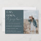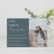 CAP, GOWN, it's going down! Contemporary graduation party photo invitation. Modern typography design on rich teal colour backgrounds with faux silver geometric pattern backing.