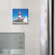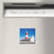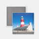 Fridge magnet with a colour image of the Cape Agulhas lighthouse, at the most southern point of South Africa, taken against the blue sky.