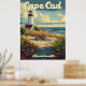 Capture the charm of Cape Cod with this vintage-inspired poster featuring a retro beach scene. Perfect for collectors, travelers, and anyone who loves the nostalgic feel of classic travel souvenirs. Send a piece of Cape Cod’s beauty to friends and family or add it to your collection for a touch of coastal elegance.