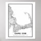 High-Resolution Map of Cape Cod, Massachusetts, United States.