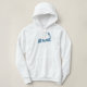 Cape Cod Native design in slate blue on white hooded sweatshirt. This design is available in other colours as well. Design copyright © 2023 by Andrew Newman for Cape Card™