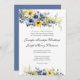 Celebrate the season of love with our enchanting Summer Wedding Invitation, adorned with a breathtaking floral design that captures the essence of sunny bliss. This exquisite invitation is a symphony of colours, featuring vibrant yellow sunflowers, calming grey and blue forget-me-nots, delicate white cosmos, and the timeless elegance of eucalyptus, dusty miller, and baby's breath. Customise our template with your information, i.e. names, dates, and venue