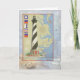 Holiday card with collage illustration of Cape Hatteras Light on background of chart of the Outer Banks. Nautical images with signal flags spelling "Peace"