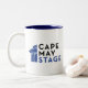 Our Cape May Stage logo on a white mug with a pop of colour on the inside! Please select if you would like this two-tone mug in an 11 oz or a 15 oz size.