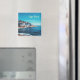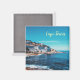Cape Town City Ocean View Landscape Bantry Bay Magnet to add to your fridge collection. A cool gift / present idea for all who love happy colours, summer vibes, travelling, South Africa, coastal living, nature, amazing landscapes, architecture, custom design items, positive vibes. Keywords: yellow, blue, turquoise, sky, mountain, sea, waves, buildings, houses, rock, travel destination.