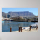 Cape Town's Harbour, with a famous hotel in the foreground and Table Mountain in the back.