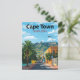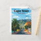 Capture the vibrant charm of Cape Town, South Africa, with this beautiful vintage-style postcard. The design features a colorful street scene in the Bo-Kaap area, a palm tree, and the iconic Table Mountain looming in the background under a bright blue sky. This travel poster is perfect for lovers of South African destinations, bright cityscapes, and warm, sunny travel art. Ideal for sending greetings, keeping as a tropical keepsake, or framing as cheerful wall art.