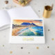A beautiful watercolor painting of the bloubergstrand beach coastline to Table Mountain in Cape Town, South Africa is set against a custom white background that may be changed to any colour of your choice and has real foil templates on it. Choose between rose gold, gold or silver and personalise the wording to suit your requirements. These are ideal for South African destination weddings and business / corporate events.