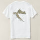 An editable title and slogan accompanies the checkboard shield over red, white and blue bands of the Cape Verdean flag on the front of this t-shirt. The back displays a detailed map of Cape Verde.