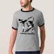 Pair of capoeiristas rendered in duotone silhouette on a ringer tee with words "Capoeira Regional" below. Text and shirt type customisable.