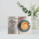 Cappuccino on a blue saucer on top of an illustrated flower book with a herbal purple sprig.