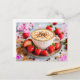 Cappuccino with crema, cinnamon and strawberries holiday postcard