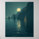 Romantic and serene, this vintage-inspired Capri travel poster captures moonlight glimmering over calm waters and sea stacks. Ideal for creating a dreamy Mediterranean ambiance at home.