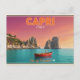 Vintage style postcard with illustration of Capri, Italy, Isle of dreams.