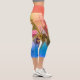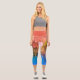 Capri Leggings with an abstract design that actually started from grasses in a pond. The waist band is orange, and the design has orange, green rust, and blue.