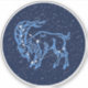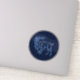 Sticker featuring the symbol for Capricorn in soft silver blue, overlaid with the stars of the constellation, against a starry sky background graded from deep midnight blue to black