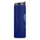 Tumbler in the zodiac sign of Capricorn in soft silver blue, overlaid with the stars of the constellation, against a starry sky background of deep midnight blue