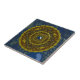 This Capricorn themed mandala features a lapis lazuli stone surrounded by the symbol for the sign, the constellation, and the alchemical symbol for Earth among filigree and weaves. This tile can be framed to create a trivet or placed inside a wooden gift box. Tiles without a frame will also fit inside the gift box to create a matching set.