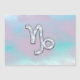 A mother of pearl style Capricorn zodiac symbol on a soft mix of pastel pink and blue print background. An elegant design for a great custom birthday gift idea for her.