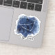 This contour-cut sticker features an artistic representation of the Capricorn constellation set against a watercolor backdrop that mimics a starry night sky. The design incorporates shades of deep blue and white, suggesting the vastness and mystery of space. The constellation itself is depicted by simple white lines connecting stars, which are represented by brighter white dots. Below the constellation, the word “Capricorn” is written in a clear, bold typeface, grounding the design with a touch of modernity.