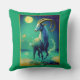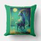 Pillow in an illustration of Capricorn as a mystical sea goat under a glowing full moon. The creature emerges from swirling ocean waves. Starry skies and a magical teal colour palette create a dreamlike, celestial atmosphere.