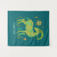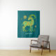 Tapestry in a stylised depiction of a goat, intricately decorated with patterns of green and yellow, representing the zodiac sign Capricorn. Surrounding elements include celestial symbols and leafy designs.