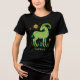 Tee in a stylised depiction of a goat, intricately decorated with patterns of green and yellow, representing the zodiac sign Capricorn. Surrounding elements include celestial symbols and leafy designs.