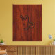 A Capricorn zodiac symbol in mahogany wood grain style print background. A modern urban racy design for a great custom birthday gift idea.