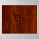 A Capricorn zodiac symbol in mahogany wood grain style print background. A modern urban racy design for a great custom birthday gift idea.