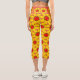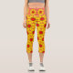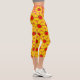 Flowers with yellow petals and centres of red and green. Large flowers are overlapping on legs. Small flowers in a row around the waist.