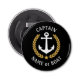 A Personalised round bottle opener with your boat name, family name or other desired text and Captain title or other rank as needed. Featuring a custom designed nautical boat anchor, gold style laurel leaves and star emblem on a black background or easily adjust the primary colour to match your current theme. Makes a great gift for Fathers day, Mothers day, Birthday or any occasion.