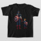 A touching illustration of Captain America holding hands with his mini-me son, both suited up in matching patriotic uniforms and shields. The powerful image symbolises love, protection, and a heroic bond between a father and his child.