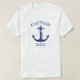 "Captain Dad" reads the text on this nautical themed t-shirt featuring a navy blue anchor with rope. Perfect for sea loving dads on Father's Day, birthdays and other special occasions.